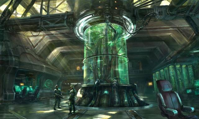 Здесь было очень много столов и стеллажей, расставленных по краям. На них лежала целая куча приборов, назначение которых мне было непонятным. Сам интерьер также был наполнен диковатыми элементами. Особенно необычными мне показались капсулы, которые располагались в нишах стен. Они были заполнены мутной жидкостью и, казалось, бурлили внутри. Сделаны они были ровно под человеческий рост и не вызывало сомнений, что каким-то образом пришельцы использовали их в оздоровительных целях.