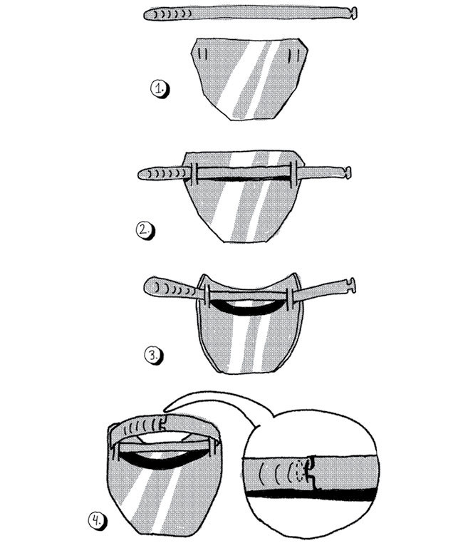 2. Проденьте ободок в прорези щитка, как показано на рисунке.