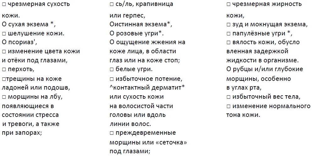 Состояние вашей кожи: подсчитайте баллы в трёх колонках только по пункту 21.
