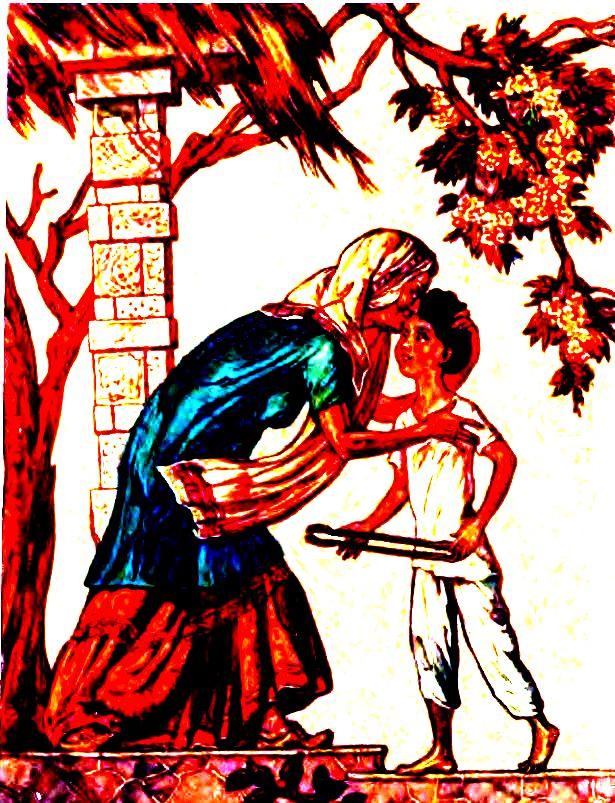 Ганги нагнулась, чтобы взять кувшин, как вдруг в доме господина тхакура открылась дверь. Даже пасть тигра не была бы для Ганги страшнее, чем эта открытая дверь.
