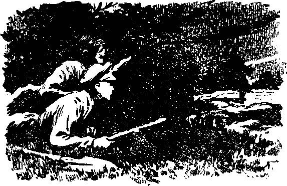 Услышав это, Владас бросился вслед за Пятрасом. Мальчики чувствовали, что кто-то гонится за ними, но оглянуться не хватало смелости. А преследователь топал уже совсем рядом. Вот он ударил Владаса в спину. Владас вскрикнул и остановился. Смотрит – а это журавль Йонас! И опять норовит клювом его ударить. Владас попробовал его успокоить, но журавль, ухватив простыню клювом, давай бить Владаса крылом. Поднялся шум... Владас оттолкнул журавля и побежал за Пятрасом, которого уже и след простыл.
