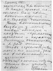 Письмо Виктора Андреевича Бабичева, адресованное Р. И. Шендеровой. 1 июня 1983 г.