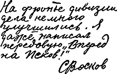 Седьмая продолжала наступать, и он не мог долго засиживаться на месте. Восков возвращался в штаб ночью, диктовал Сальме несколько распоряжений, наскоро съедал свой ужин – ломоть хлеба, запивая его кружкой воды, и засыпал на рваном диване, а если диван бывал занят, устраивался на столе, за которым только что рассматривал с начштаба карту. Через час-два поднимался освеженный, разыскивал на рассвете секретаря и извиняющимся голосом говорил: