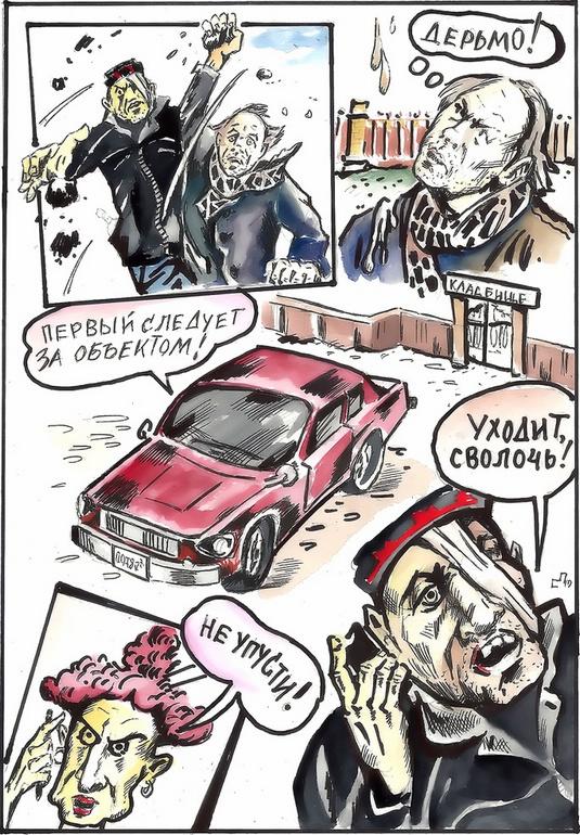 Зевакина уводили под руки, призывая не убиваться так на могиле лучшего друга. Утешали обещаниями, что совсем вскоре они вновь повстречаются для совместной загробной жизни. Слова утешения вызывали бурный обратный эффект. Он вырывался из цепких рук, бессвязно выкрикивал что-то, хватал по дороге камни и, оборачиваясь, прицельно и метко бросал их в сторону могилы.