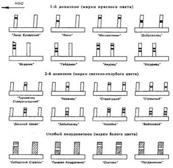 Расположение марок на трубах на эскадренных миноносцах Балтийского флота.