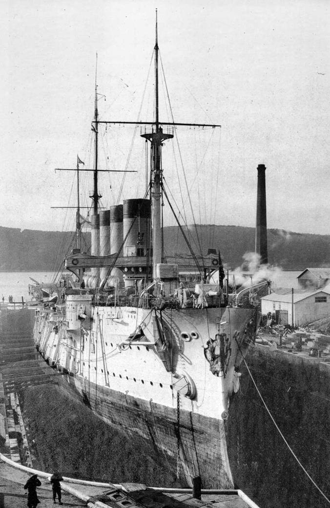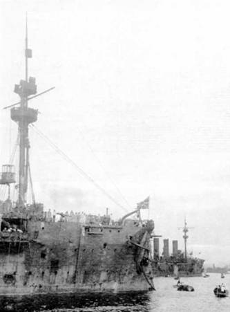 Вверху и слева: «Россия» на Владивостокском рейде после боя 1 августа 1904 г.