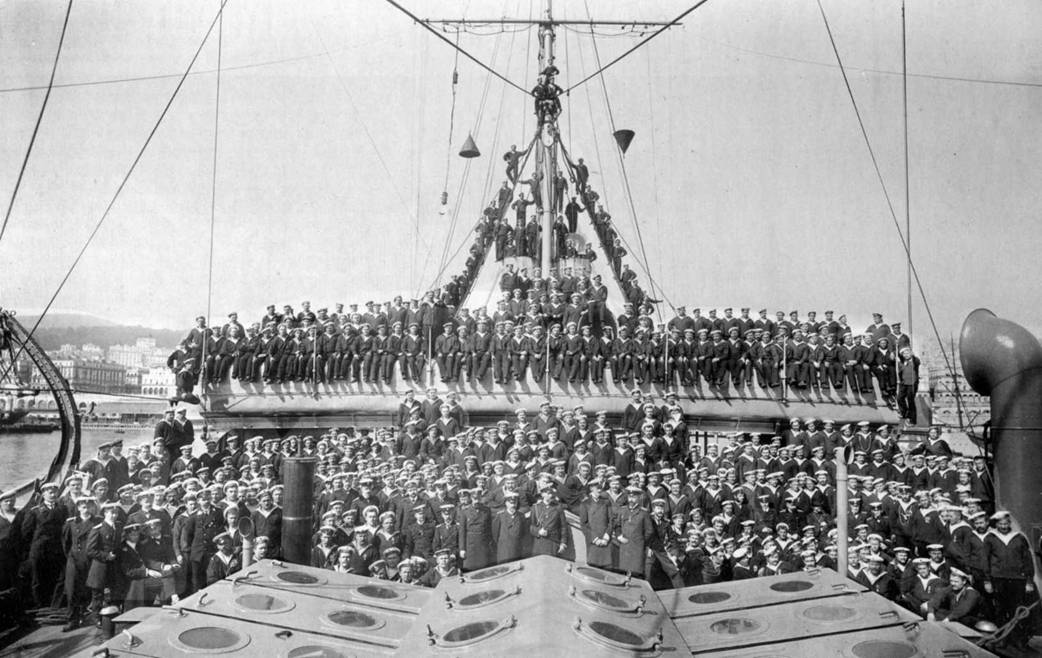 Вверху: на крейсере «Россия» после вступления в строй. 1897-1898 гг.