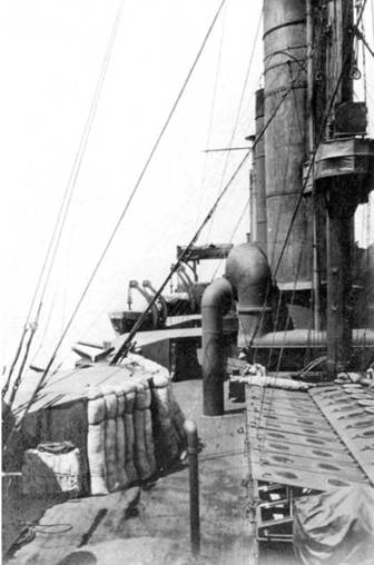 Бедный "Рюрик" не был в состоянии двигаться, остался сзади, и по нему сосредоточился весь огонь неприятеля, к которому подошли крейсера "Нийтака", "Чиода" и "Кассаги". Минут через 10 мы снова повернули и пошли опять отстаивать "Рюрика". Я воспользовался передышкой и побежал в кают-компанию выпить волы. Когда поднимался наверх, мы опять приблизились к неприятелю, и опять у нас начался ад. Опять гром выстрелов, стоны раненых и пожары. Все в памяти у меня перемешалось, врезались только отдельные эпизоды. Помню часового у флага на грот-мачте, раненого, в крови, не хотевшего уйти по моему приказанию и ушедшего лишь по приказу старшего офицера. стоишь какой-то оглушенный, ничего не соображая, не думая ни о чем. Рядом несколько матросов: все, что осталось от прислуги верхней центральной батареи (а их было человек 80).