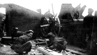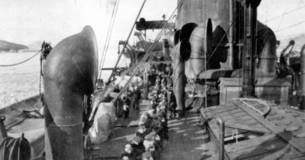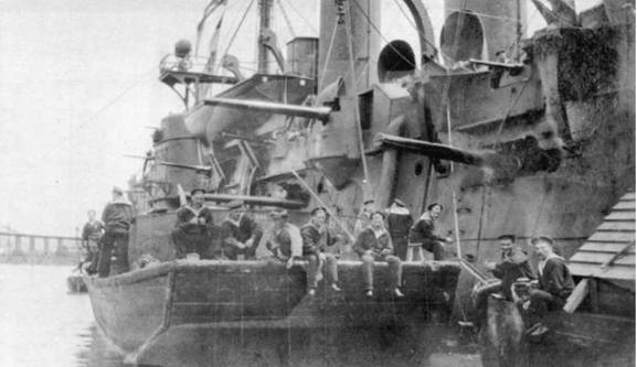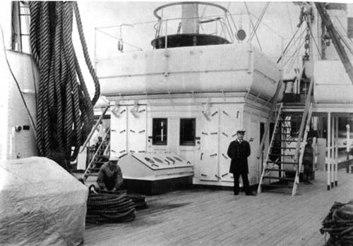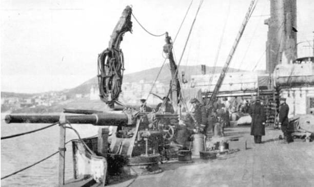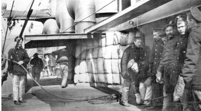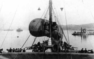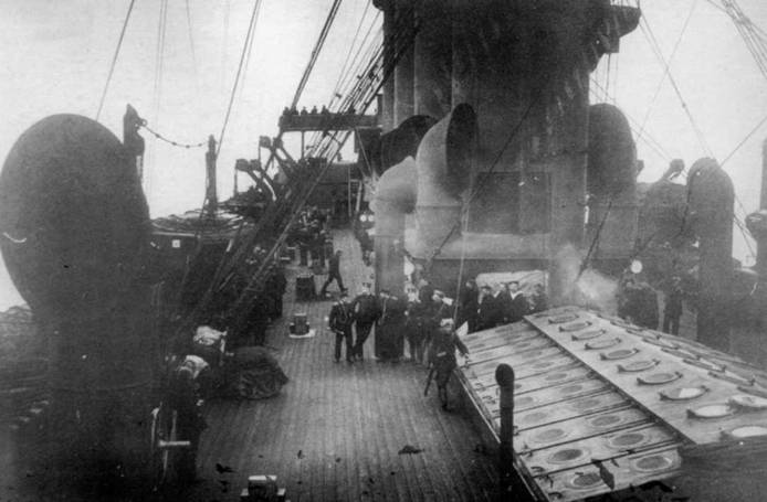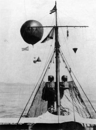 На крейсере «Россия» во время опытов по запускам воздушно – го шара и аэростата. Апрель 1905 гг.