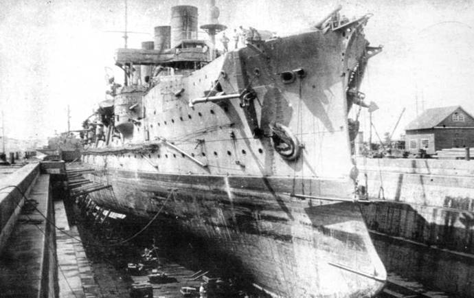 Крейсер «Россия» на Большом Кронштадтском рейде в годы первой мировой войны.
