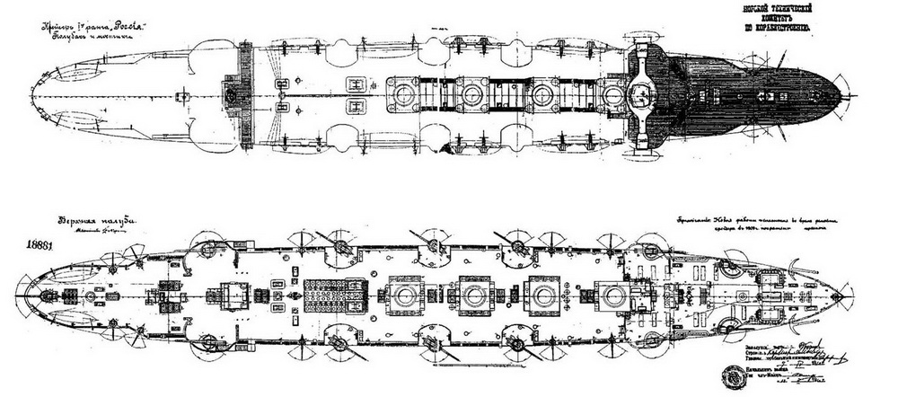 Крейсера 1 ранга «Россия» (Теоретический чертеж корпуса)