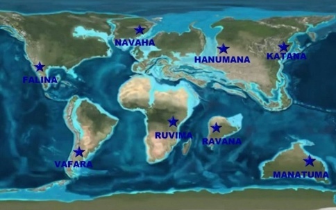 На территории материка Индия находилась кальдера наподобие той, что сейчас находится в Йеллоустоне и на Суматре. Взрывами антиматериальных бомб хануманцы разрушили вулканическую пробку и лава неудержимым потоком разлилась по всему Индостану. Всего на поверхность вылилось 512000 км3 лавы. Представьте себе куб, каждая грань которого равна расстоянию от Москвы до Воронежа. От пепла, лавы и кислотных дождей на материке Индия погибло всё живое.