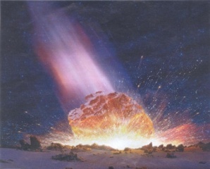От взрывов и пожаров в небо поднялись миллионы тонн пыли, которые закрыли Землю от солнечного света. Динозавры погибли от резкого понижения температуры на планете, хотя многие из них имели гребни и перья, но 5 летняя зима их добила. Выжила всякая мелочь – крысы, воробьи, ящерки, лягушки, крокодильчики, черепашки.