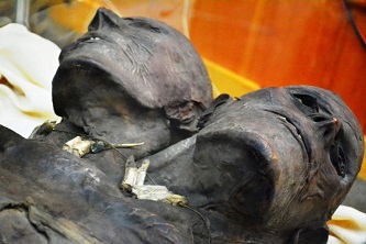 Интересны также одеяния, в которые завёрнуты мумии. Они сотканы из рыжих волос, идентичных сохранившимся на головах гигантов. То есть атланты стригли волосы, когда они достигали определённой длинны и копили их в специальном ящике, чтобы после смерти им соткали из них посмертную рубашку. Очень любопытный обычай, нигде больше в мире не встречающийся.