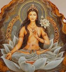 Тара – главная богиня буддизма. Тара, Милосердная, родилась из слезы бодхисаттвы Авалокитешвары, в тот момент когда тот оплакивал страдания мира. Из упавшей слезы вырос лотос, и из него родилась богиня Тара, ставшая его вечной спутницей. Тара, Спасительница, воплотила в себе деятельную энергию сострадания, и люди начали прибегать к ее помощи во всех своих нуждах, она стала самой почитаемой богиней Тибета, Монголии и Бурятии. Обычно считалось, что обрести Высшее Просветление можно лишь в теле мужчины, и женщине, накопившей должные заслуги, необходимо испытать еще одно перерождение. Но Тара объяснила всем, что нет такого различия, как мужчина и женщина, а потому она, вопреки всем предрассудкам, будет в теле женщины работать на благо всех живых существ до тех пор, пока мир сансары не опустеет, и лишь тогда станет буддой и из тела женщины непосредственно уйдет в нирвану.