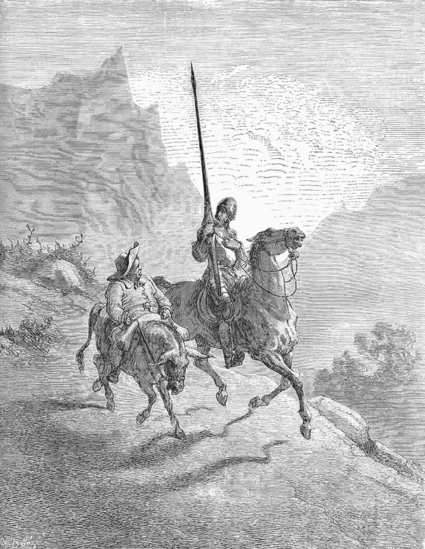 Гюстав Доре. Дон Кихот и Санчо Панса. Иллюстрация. 1863