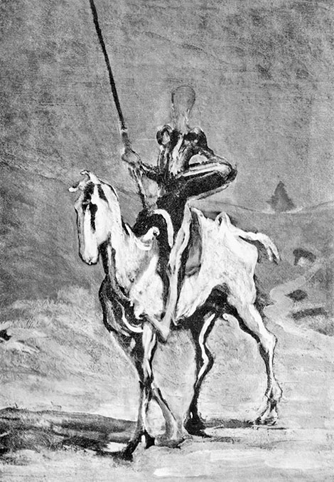 Если следовать тексту Сервантеса, то Дон Кихот стал тяготиться той праздной жизнью, какую он вел в замке герцога, и попросил позволения покинуть его гостеприимную обитель, чтобы вновь отправиться в путь со своим верным оруженосцем.