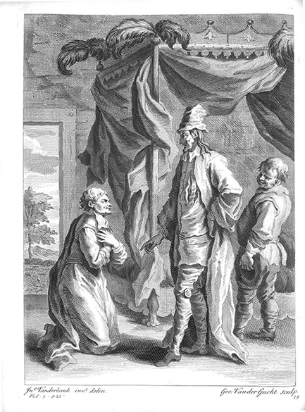 Джон Вандербанк. Дон Кихот, Санчо Панса и Самсон Карраско. Иллюстрация. 1738