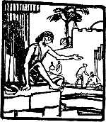 Нилуфар была занята другим: она приглядывалась к корзине бананов стоящего вблизи торговца. Из-за спины какого-то горожанина она осторожно протянула руку и, схватив связку бананов, быстро удалилась. Горожанин увидел ее проделку и решил попытать счастья сам. Он запустил руку в корзину, но так как его никто не прикрывал, торговец сразу заметил вора. С бранью он вцепился в горожанина. Тот стал отбиваться. Оба упали, корзина опрокинулась, бананы рассыпались по земле. Дети с криком набросились на нежданное угощение. Видя такое беззаконие, остальные торговцы завопили: «Грабеж! Грабеж!» – и принялись с необычайным проворством закрывать лавки. Вишваджит закричал: