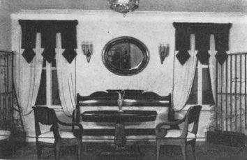В другой комнате, служившей столовой и гостиной, у небольшого деревянного диванчика, покрытого войлочным ковром, стоит круглый столик. Это подлинная вещь, сохранившаяся из прежней обстановки домика. По утрам Лермонтов работал за ним, вынося его на террасу, пристроенную к домику со стороны сада. Поэт любил работать на этой терраске, слушая на заре пение птиц.