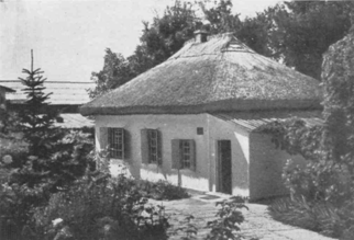 «Наружность домика, – писал в 1892 году П. К. Мартьянов, – самая непривлекательная. Одноэтажный, турлучный, низенький, он походит на те постройки, которые возводят отставные солдаты в слободках при уездных городах. Главный фасад его выходит на двор и имеет три окна, но все они различной меры и вида… Сбоку домика, с правой стороны, пристроены деревянные сени с небольшим о двух ступенях крылечком. Стены снаружи обмазаны глиной и выбелены известкой. Крыша тростниковая с одной трубой».