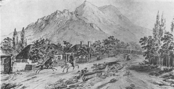 Но самой беседки в тот год еще не существовало. На ее месте стоял казачий сторожевой пост – один из многих постов, размещавшихся в то время на возвышенностях Горячих вод. Много интересного мог Лермонтов видеть и слышать здесь в те годы. Приезжавшие на лечение водами раненые рассказывали о боевой жизни, о мужестве русских солдат и горцев, о захвате пленных.