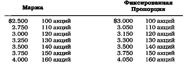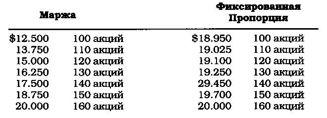 Если максимально неблагоприятное ценовое движение составляет 15 долларов, то для приобретения очередных 10 акций следует использовать дельту в 75 долларов. В этом случае поможет следующая таблица.