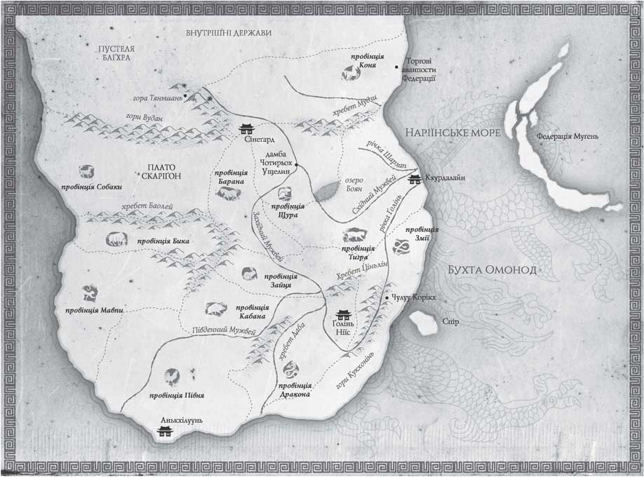 Найлегше давалась історія. Історія Нікані була захопливою сагою про постійні війни. Імперія виникла тисячоліття тому під проводом могутнього меча безжального Червоного Імператора, який знищив чернечі ордени, розкидані по материку, і створив єдину державу нечуваного доти розміру. Тоді нікарські народи вперше усвідомили себе єдиною нацією. Червоний Імператор унормував нікарську мову, запровадив єдину систему мір і створив мережу доріг, які сполучали його неосяжні землі.