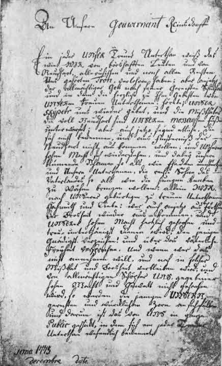 Именной указ Пугачева Рейнсдорпуот 19 декабря 1773 г. (на нем. яз.)