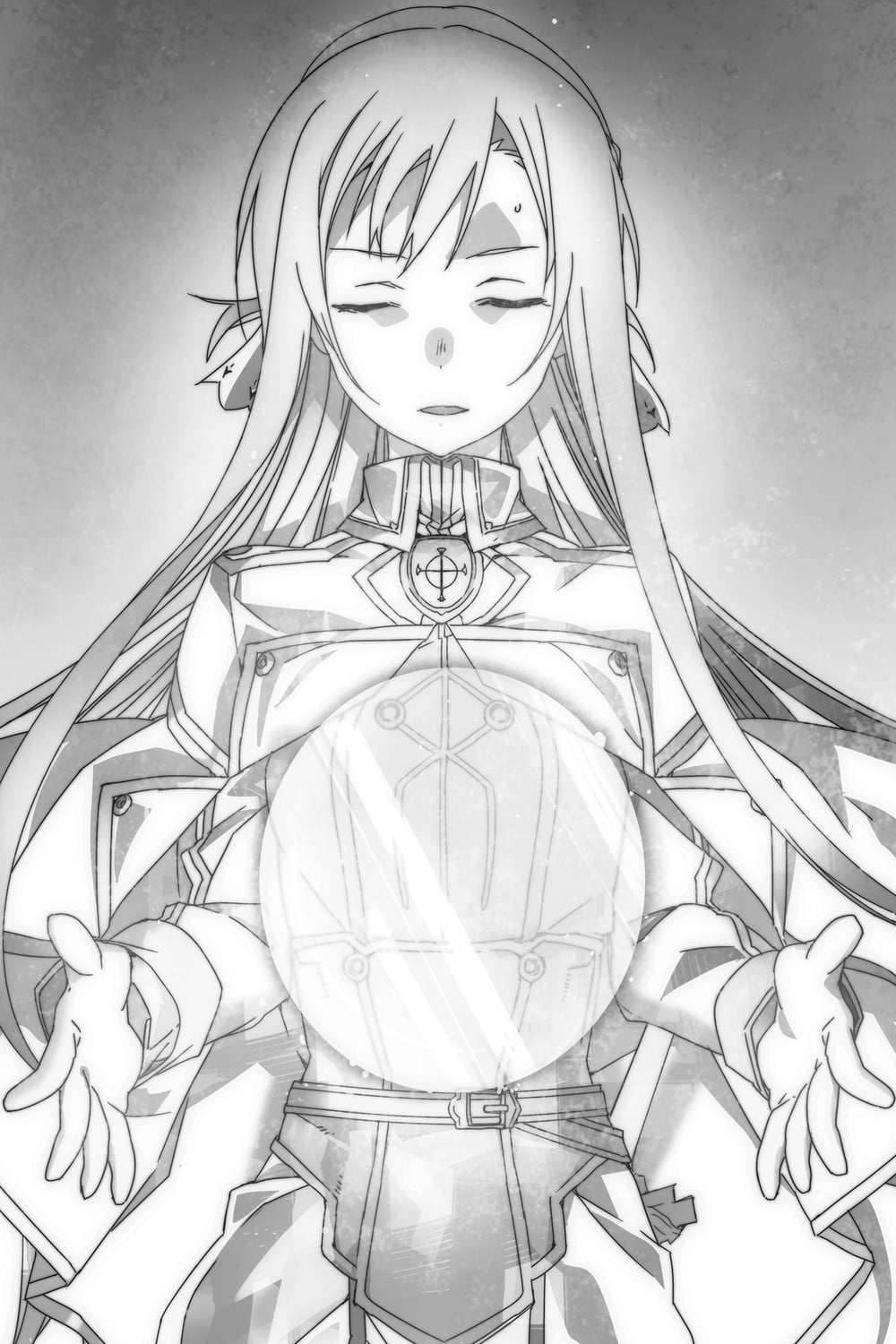 Священные заклинания всегда оказываются эффективнее, точнее и сильнее, если читать их по памяти, а не с листа. Кирито объяснял это тем, что на силу заклинаний тоже влияет Инкарнация. Вот почему тексты заклинаний обычно учат наизусть, но заклинание просмотра прошлого, которое начала зачитывать Асуна, оказалось гораздо длиннее, чем могла себе представить Ронье.