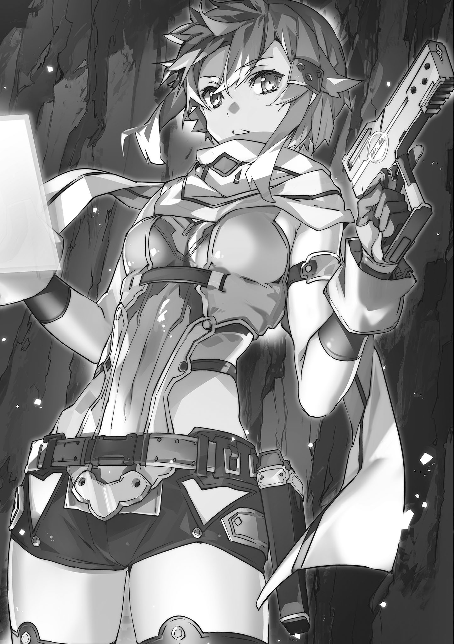 Когда в GGO игрок экипирует оружие, в нижнем правом углу интерфейса появляется счётчик патронов, однако в этом мире подобное не предусматривалось. Синон пришлось достать пистолет из кобуры и посмотреть на шкалу энергии на корпусе. Она показывала шестьдесят три процента. Синон мало знала о лазерах и не могла сказать, на сколько выстрелов этого хватит.