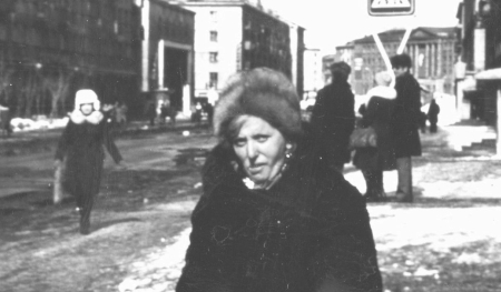 «Моя Нина идёт на работу в гормузшколу, вдали виден Горный техникум». «Нина Михайловне Валерштейн (Рохман) – моя жена, мы прожили с ней 56 лет и имеем троих детей и пятерых внуков, и я стал прадедом».