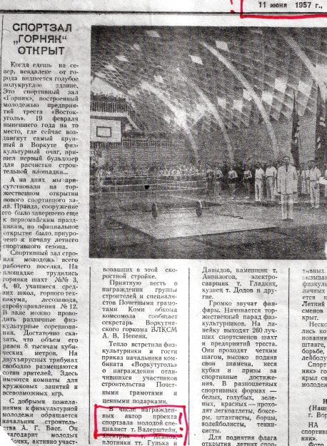 «Спортзал в Воркуте, в то время, когда его открывали».