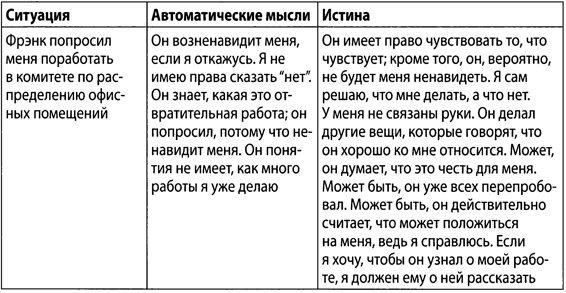 □ Нарисуйте таблицу из трех столбцов. Специалисты по когнитивно-поведенческой терапии часто используют формы в виде колонок как способ поиска альтернативных способов мышления. Самой простой является таблица из трех столбцов (табл. 2.1).