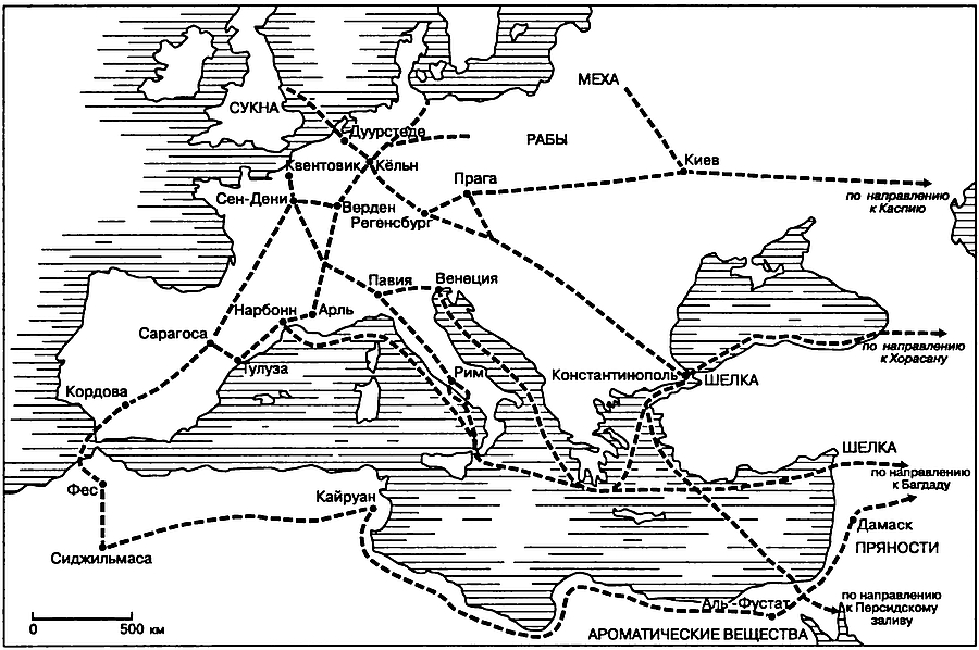 (по кн.: М. Lombard. Espaces et réseaux du haut Moyen Age, p. 80)