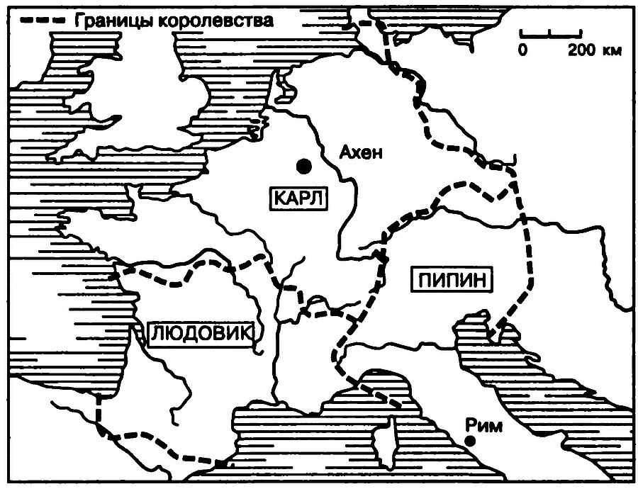 «Предписываем и указываем, разделив на три части всю территорию королевства, какой частью кому из них следует руководить и управлять таким образом, чтобы каждый был удовлетворен своей долей, и всеми силами стремился защищать границы своего королевства и блюсти мир и любовь по отношению к другим братьям» (MGH Capitularia, I, р. 126).