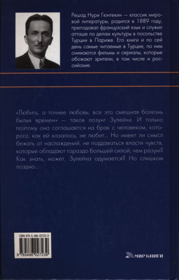 Решад Нури Гюнтекин – классик мировой литературы, родился в 1889 году, преподавал французский язык и служил атташе по делам культуры в посольстве Турции в Париже. Его книги и по сей день самые читаемые в Турции, по ним снимаются фильмы и сериалы, которые обожают зрители, в том числе и российские.