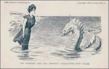 Ч. Д. Гибсон. «Неудивительно, что морской змей часто посещает наш берег» (открытка, 1900).