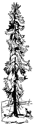 Собака наседала. Кровью налиты глаза соболя, разлетается под лапками снег, колечками пара дышит широко открытый рот, в ушах свистит ветер. Белогрудый подбежал к одинокому кедру, стоявшему посреди поляны. Цепко ухватившись за шероховатую кору, зверек черной лентой взметнулся вверх. У самого хвоста щелкнули зубы собаки. Сделав гигантский прыжок, она попыталась схватить ускользающую добычу.