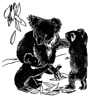 Может возникнуть вопрос: почему коала нельзя увидеть ни в одном европейском зоопарке? Объясняется это тем, что они питаются исключительно листьями некоторых австралийских эвкалиптов, акклиматизировать которые до сих пор в Европе не сумели. (Из пятисот видов эвкалиптов коала питаются листьями только пяти.) Питательность эвкалиптовых листьев невелика, и коала поедает за день неимоверное их количество. Поэтому кишечник сильно развит, непропорционально размерам животного, длина которого примерно семьдесят сантиметров.
