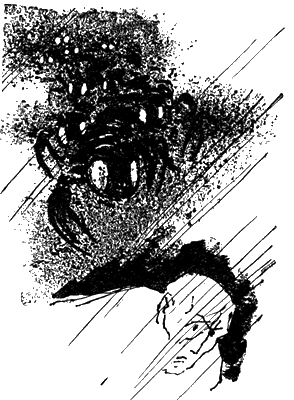 Лошадь неожиданно встала на дыбы, и Бигелоу почти сразу увидел Кроссби, лежавшего ничком и облепленного гигантскими скорпионами, как кусок сырого мяса мухами. Что-то странно знакомое почудилось Бигелоу в этих копошившихся существах. Они перелезали через Кроссби и падали. Их тела, состоявшие из сегментов, изгибались совсем как у раков и скорпионов, а хвосты оканчивались длинной острой шпорой или иглой. Когда чудовища прогибались, их блестящие, как будто отполированные, хитиновые панцири скрипели и потрескивали.