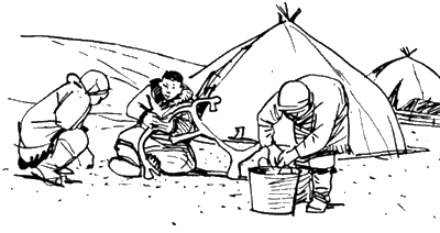 Мне удалось участвовать в охоте на моржей и китов на вельботе. Морские охотники – это люди мужественные, смелые и скромные, привыкшие к трудностям, которых здесь достаточно. В каждой охотничьей бригаде есть опытный охотник, по «блину» на воде определяющий направление, в котором уходит кит от погони. На берегу можно увидеть причудливые гигантские кусты из воткнутых в землю китовых ребер.