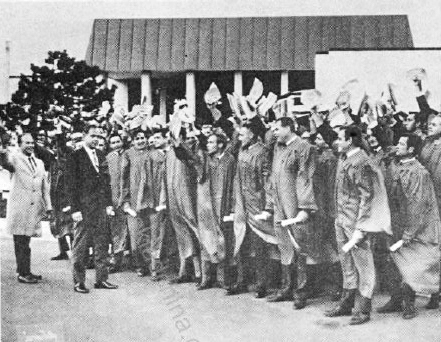 Выпускной класс «Гамбургерского» университета на встрече со мной и Фредом Тернером после церемонии вручения дипломов. Это учебное заведение, располагавшееся в подвале ресторана в Элк-Грув, приняло первых студентов в 1961 году