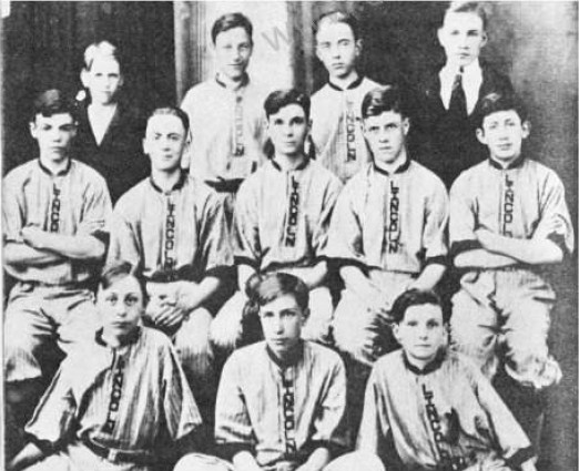Боб> Лорэн и я («шайка») позируем в выходной одежде на ступенях крыльца позади дома. О бейсбольной команде Линкольнской средней школы на нижней фотографии память хранит смутные воспоминания как о довольно грозных игроках. Будущий владелец «Падре из Сан-Диего» стоит третьим слева в верхнем ряду.