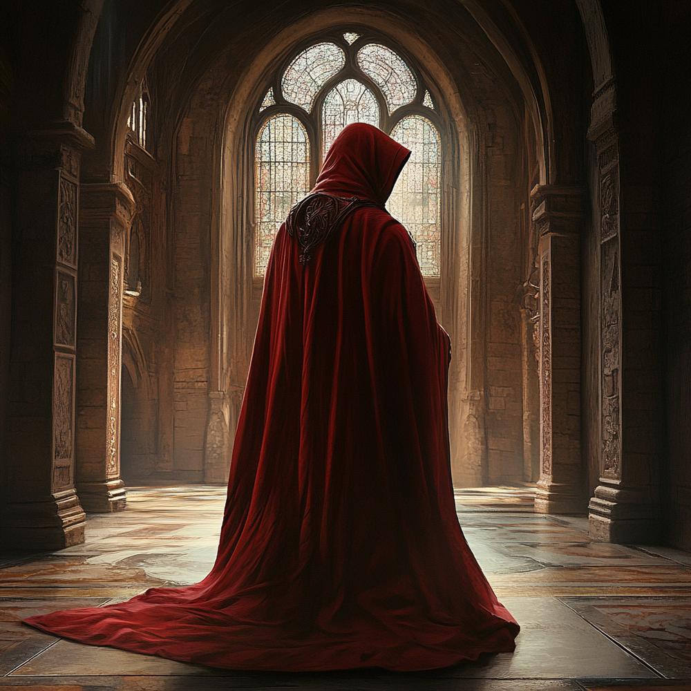 Я притаилась. Сначала завидела слабое свечение – от факела, визитёр освещал им себе путь. Наконец, тяжёлая поступь приблизилась настолько, что я сумела разглядеть полы плаща – красные. А затем подняла взгляд выше.