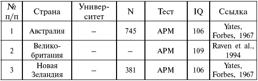 Исследования интеллекта европеоидных студентов университетов подытожены в Таблице 3.3.