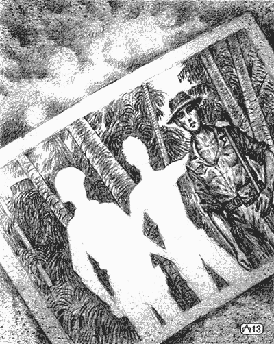 Направляющий по приказу капитана ушел далеко вперед. В джунглях уже становилось жарко и влажно. Никто не разговаривал. Глаза были устремлены на зеленый мир, плотно окружавший нас со всех сторон.