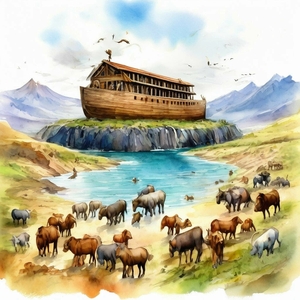 Ковчег пристал к берегу земли Арарата. Животные – теперь его собратья, начали парно выходить на сушу.