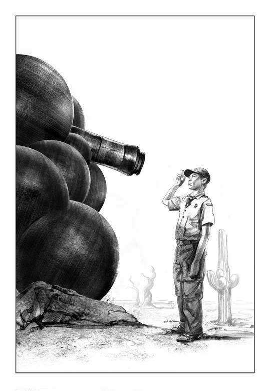 Начать с того, что в пустыне было жарко. Мучительно, отвратительно, обморочно жарко. И, разумеется, это не мешало вожатым тащить их все глубже и глубже в пекло – пять миль, десять миль… Они брели мимо высящихся башнями скал и перебирались через высохшие, как старые кости, речные русла. Нормы потребления воды – совершенно дикие. Каждому скауту выдали маленькую бутылочку, которую нужно растянуть до тех пор, пока отряд не найдет природный источник. В пустыне. Что само по себе – та еще задачка. Вожатые проинструктировали держать во рту камешки и усердно их сосать, чтобы слюнные железы продолжали работать и во рту сохранялась влажность. Кит и тут был на полкорпуса впереди. Он нашел себе подходящую пару голышей задолго до того, как вожатые соизволили поделиться этой вселенской мудростью. Если бы задача была действительно выжить в полевых условиях, думал Кит, они бы не ковыляли, как идиоты, под палящим дневным солнцем, а сидели бы где-нибудь в тени, чтобы сберечь силы и уменьшить потоотделение. Но это было чужое шоу, так что он просто шел себе вперед.