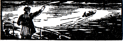 На большой воде нашего суденышка, окрашенного в голубой цвет, конечно, никто не заметит. Толя пускает моторчик иа все десять лошадей. Сергей палит из ракетницы. Но вспышки ракет немедленно погружаются в туман, так что даже мы сами их не видим. Тогда он начинает стрелять горизонтально, в направлении «Коммунара». А буксир, выбросив новое облачко пара, вдруг меняет курс и удаляется. Доносится гудок. Не замечают!